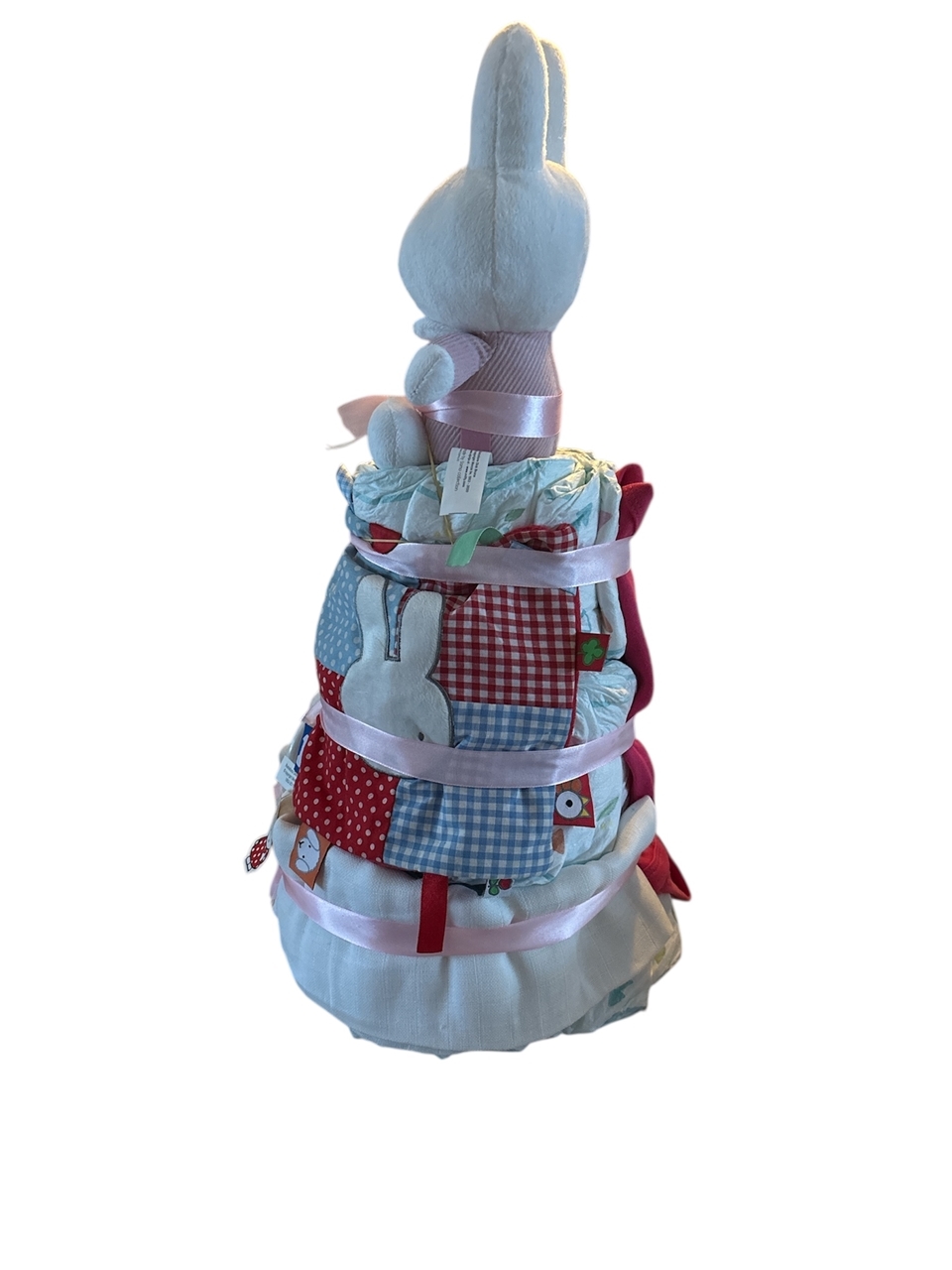 Luxe roze Nijntje luiertaart met knuffel, tutdoek, rammelaar, romper, hydrofiel en Pampers. Stijlvol kraamcadeau. Handgemaakt en klaar om te geven!